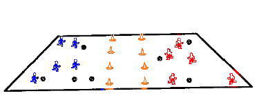 Small Game 20 - 25 Minutes. Activity level: Medium progression to high. Space: Defined space "smaller". 3 - 5 players per group.