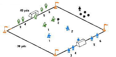 Team Game 30 Minutes plus. Activity level: High. Space: Defined for the game = larger space. 7 - 11 players per team.