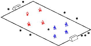 Depending on the fitness expectations of the coach, the team is asked to play a particular style. For example, if the coach wants them to increase the fitness demands on the players, they could be asked to play man-to-man defense and play high pressure. If pulse rates need to be lower, the teams could be asked to play zones and low pressure.