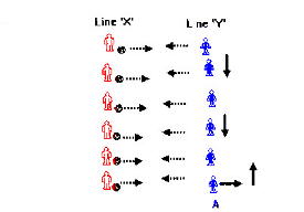 line, repeating the activity at each successive player. Line Y players receive