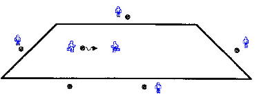 grid. Defender tries to gain possession of the ball. This is a continuous flow