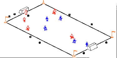 - Play 2 v. 2 in the middle or 3 v. 3, size accordingly.