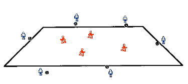Team Game 30 Minutes plus. Activity level: High. Space: Defined for the game = larger space. 7 - 11 players per team.