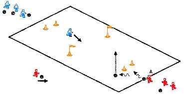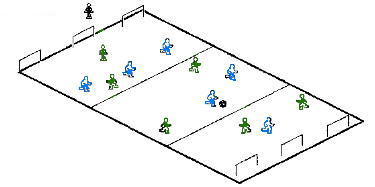 Small Game 20 - 25 Minutes. Activity level: Medium progression to high. Space: Defined space "smaller". 3 - 5 players per group.