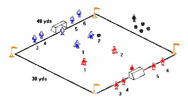 The number of players playing at one time depends on the coach's objectives. However, this game is best when played in groups of 2 v. 2, or 3 v. 3.