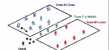 in their own zone. (Team A can pass to Team B as shown in the diagram)