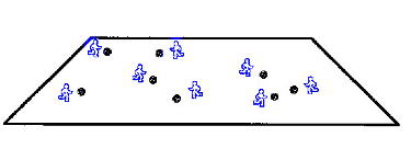 grid. Defender tries to gain possession of the ball. This is a continuous flow